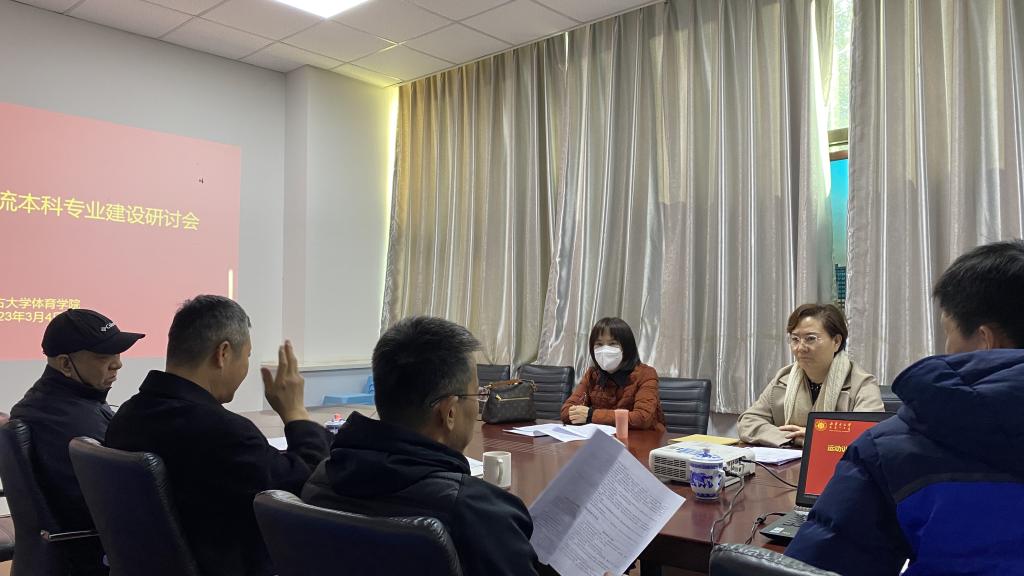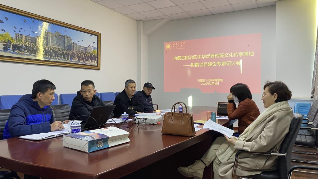 2023年3月4日上午TYC234CC太阳成集团在北校区TYC234CC太阳成集团会议室举行运动训练专业一流本科专业建设及射箭项目建设专家研讨会。此次研讨会邀请了内蒙古师范大学TYC234CC太阳成集团院长高娃教授、专业课教师乌云格日勒教授。参加此次研讨会的有TYC234CC太阳成集团院长王文杰教授、TYC234CC太阳成集团副院长刘忠良副教授、TYC234CC太阳成集团办公室主任孙吉旺副教授、专业课教师吉如河教授。