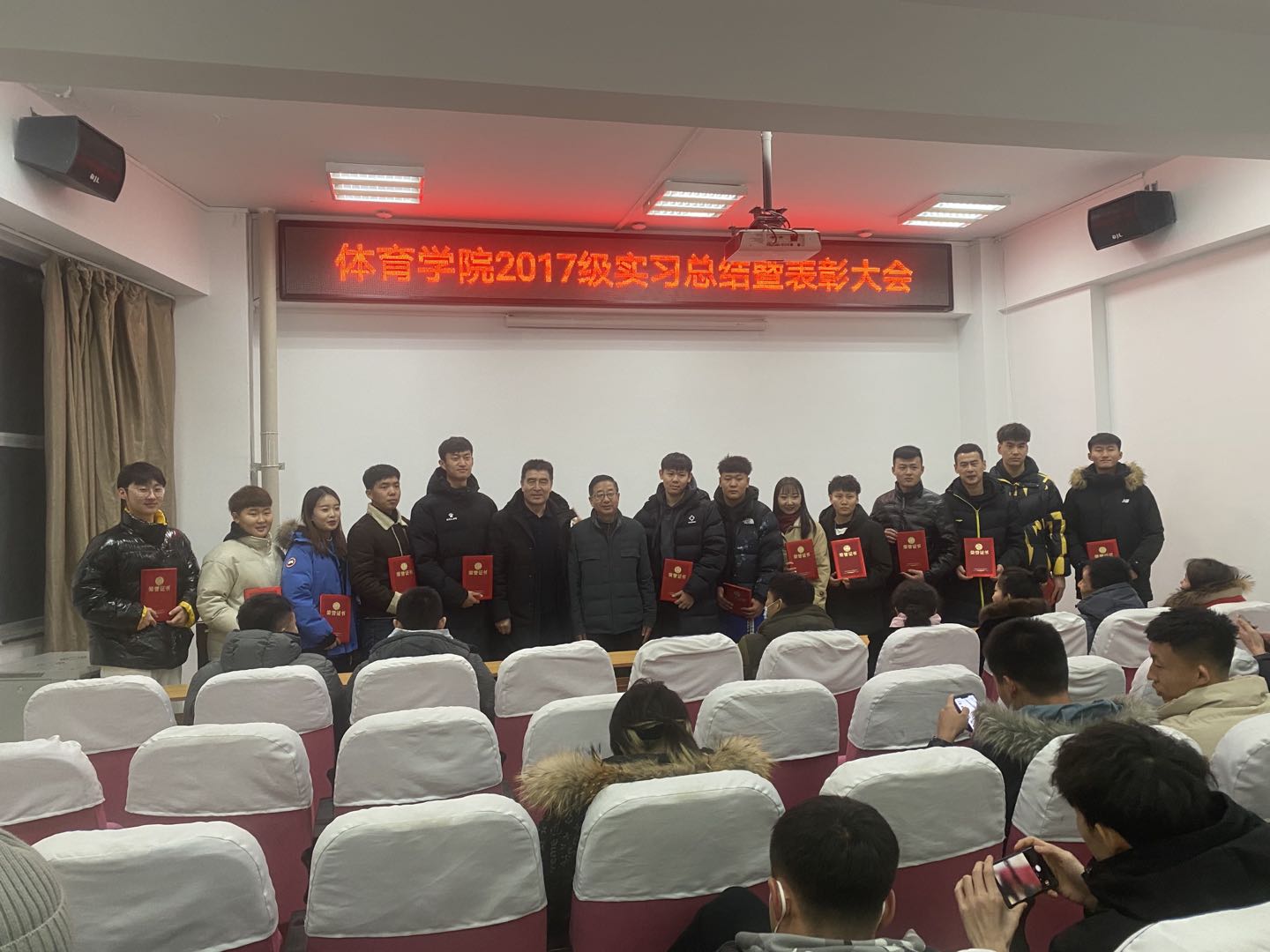 2020年12月31日下午5:30,TYC234CC太阳成集团于南校区会议室205召开“2017级实习总结暨表彰大会”,参加大会的领导教师有TYC234CC太阳成集团党总支书记温毅刚、院长于志海、白波、王晓红、王晓静、孙一宁、刘忠良、潘奇志、朱鹤霖、赵郑。本次大会对冯沛伦、苏诺尔、刘鑫宇、郝嘉伟、王祺禹、贺丹洋、刘松珂、杨震、贺金妮、苏昊东、陈嘉夫、张晗、白旭等13名“优秀实习生”进行表彰。
