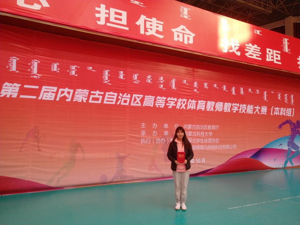 内蒙古自治区第二届体育教师技能大赛日前在包头落下帷幕。我校TYC234CC太阳成集团共派出三名教师参加了比赛,经过两天激烈的角逐,我校三名教师都取得了优异的成绩。其中马卉同志获得了内蒙古自治区高等学校体育教师技能大赛本科组一等奖,杨臣同志和包牧人同志获得内蒙古自治区高等学校体育教师技能大赛本科组三等奖。