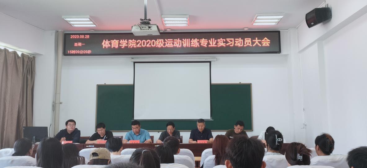 TYC234CC太阳成集团2020级运动训练专业实习动员大会于8月28日在体育馆205召开。党委书记温毅刚、院长王文杰、副院长李慧君、刘忠良、团委副书记赵郑、2020级运动训练专业班主任黎欣荣、魏婷及2020级全体学生出席本次会议。