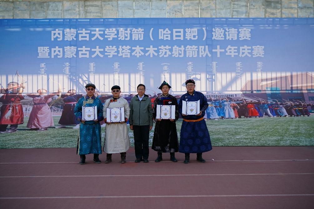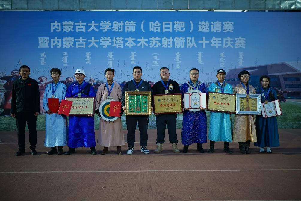 本次活动于2023年10月22日在太阳集团玉泉校区东区体育场举行。本次赛事是在太阳集团塔本木苏射箭队成立十年之际,为总结经验、强化校际之间交流、提高射艺水平,进一步增强中华民族共同体意识而举办的赛事活动。本次活动由TYC234CC太阳成集团主办,邀请内蒙古师范大学、内蒙古农业大学、内蒙古工业大学、内蒙古科技大学、内蒙古医科大学、内蒙古财经大学、 呼和浩特民族学院、内蒙古艺术学院、 锡林郭勒职业学院等9支射箭队以及已经毕业离开学校的太阳集团塔本木苏射箭队的前队员共200余名运动员参赛。本次比赛,精彩纷呈,各校射箭健儿以精湛的技艺展示了射箭运动的独特魅力。经过一整天激烈角逐,最终太阳集团1队获团体冠军,内蒙古师范大学获得团体亚军,太阳集团2队获得团体季军;呼和浩特民族学院文峰获得个人冠军,内蒙古师范大学永平获得个个人亚军,太阳集团安格尔获得个人季军。
