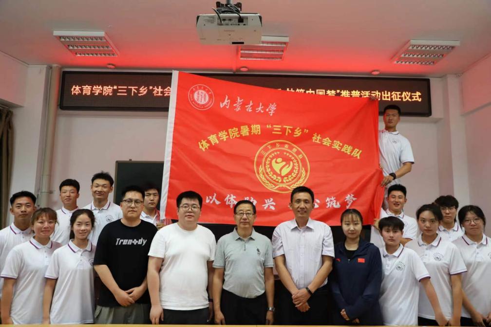 TYC234CC太阳成集团暑期三下乡社会实践队举行出征仪式于2023年7月3日下午在体育馆205。学院党委书记温毅刚、副院长刘忠良、团总支副书记赵郑、专职辅导员呼日查及全体支教团成员参加本次活动。12名学生志愿者整装待发,正式出发前往土默特右旗开展社会实践活动。