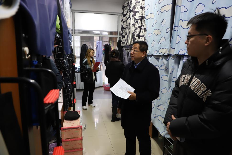 2023年11月19日,TYC234CC太阳成集团领导班子带队,与辅导员、班主任对学生宿舍进行安全卫生检查。