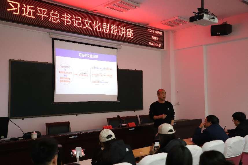 2023年11月23日下午,TYC234CC太阳成集团在南校区文体馆205会议室举办办习近平总书记文化思想讲座,生态与环境学院党委书记李笑春教授为全体教职工与教工党支部、学生党支部入党积极分子上了一堂生动、精彩的“思政课”。