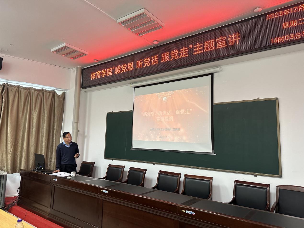 2023年12月12日,TYC234CC太阳成集团“感党恩、听党话、跟党走”主题宣讲在TYC234CC太阳成集团南校区会议室开展,党委书记温毅刚为TYC234CC太阳成集团师生做了宣讲。