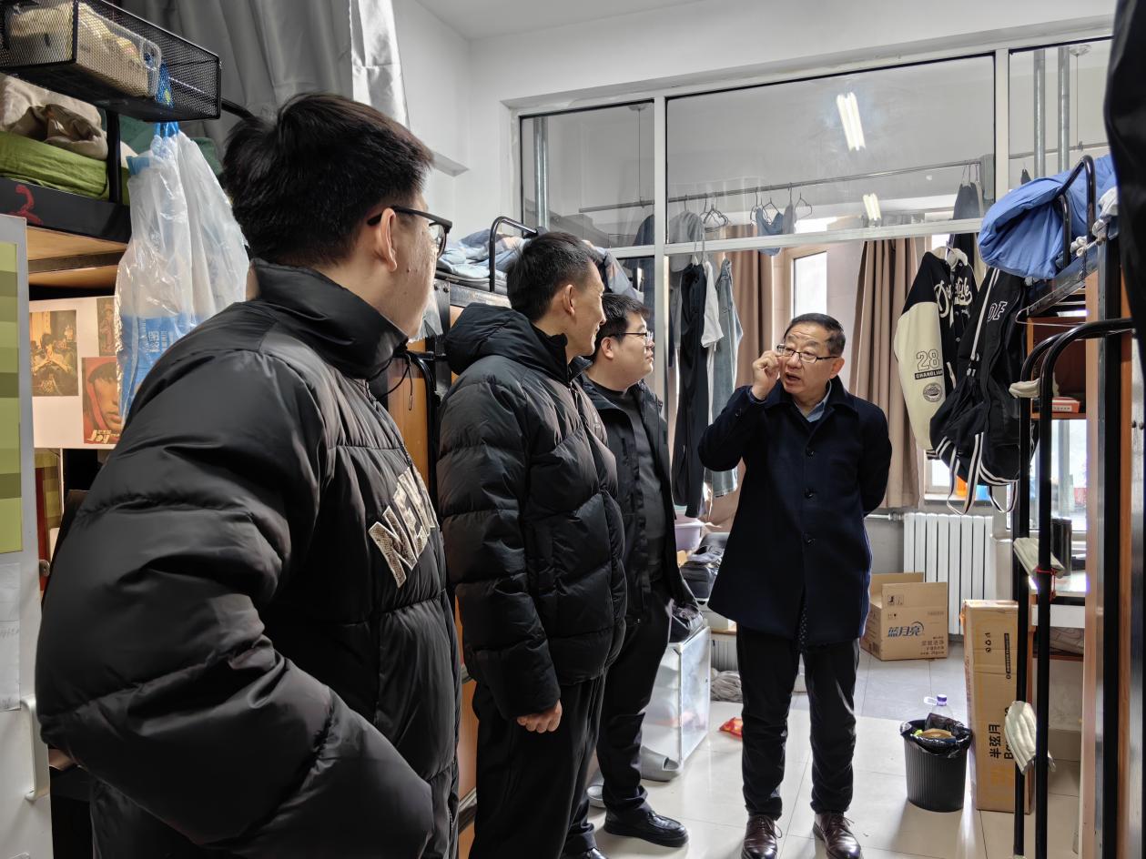 领导班子成员进入学生宿舍检查