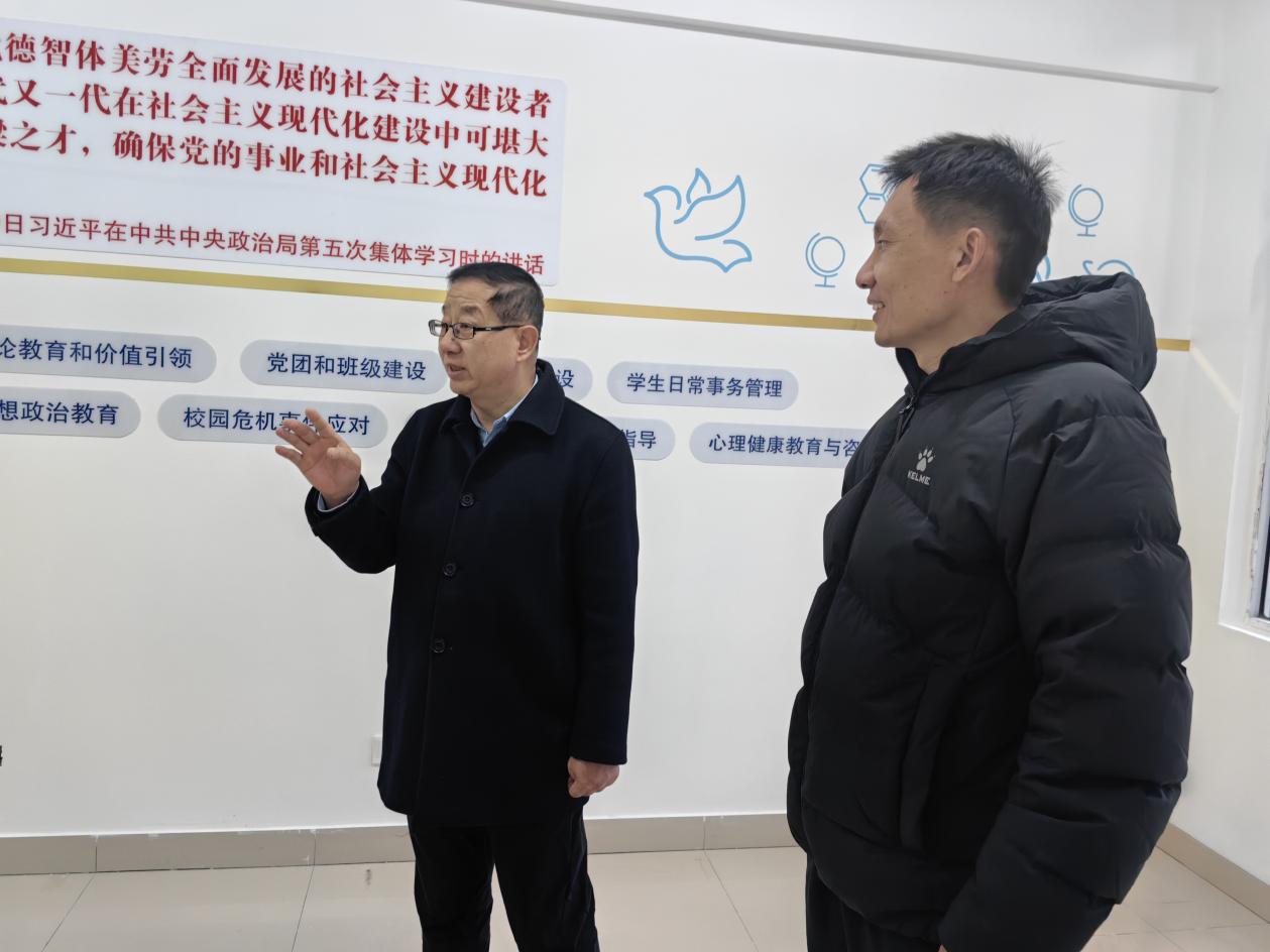 党委书记温毅刚、副院长刘忠良查看驻楼辅导员工作站