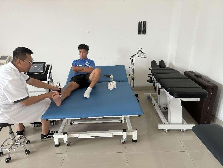 2024年6月17日,太阳集团男子足球队超级组为积极准备2024年内蒙古自治区大学生足球联赛,李子宽老师在TYC234CC太阳成集团运动康复实验室为即将踏入赛场的队员们进行伤病运动康复,帮助运动员在训练或过往比赛过程中产生的伤病提供治疗,尽量减少负面影响,为各运动队在接下来的比赛中取得更优异的成绩保驾护航。