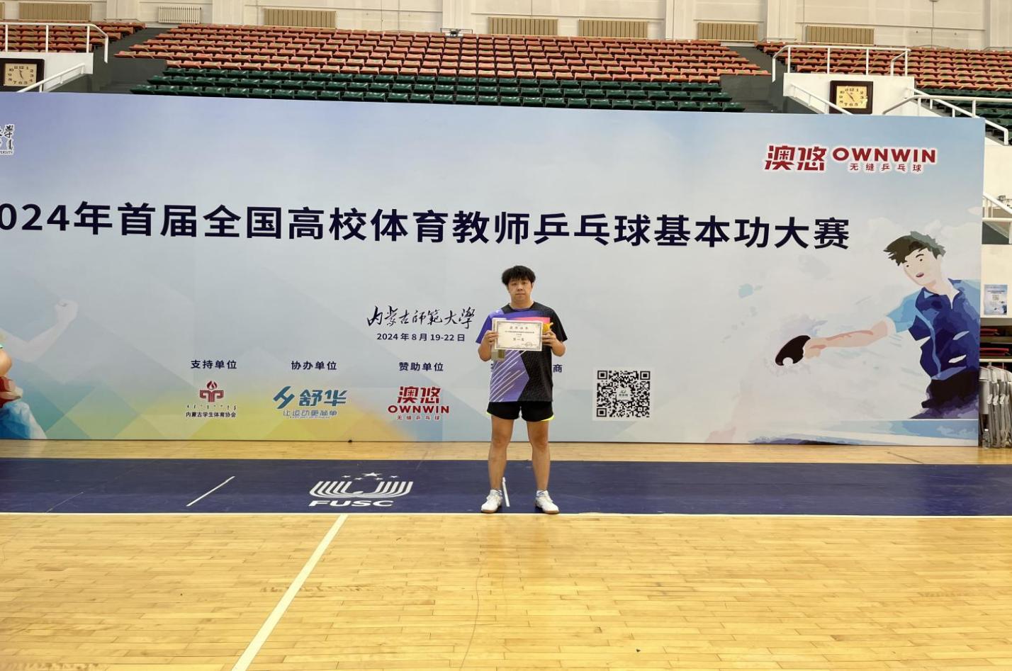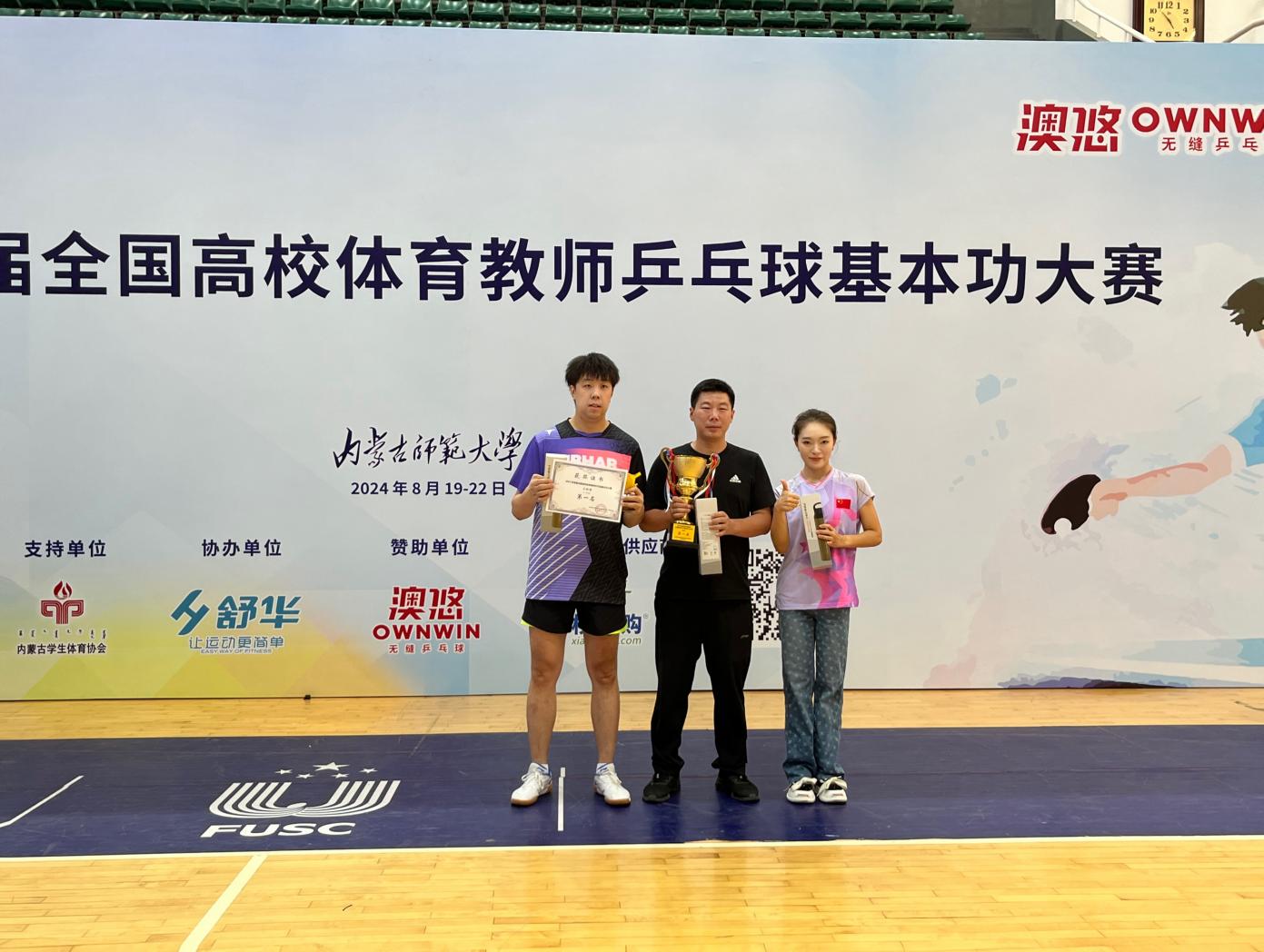 8月20日-21日,全国高校体育教师乒乓球基本功大赛暨砂板乒乓球教学研讨会在内蒙古师范大学举办,我校TYC234CC太阳成集团三位乒乓球教师在学校及TYC234CC太阳成集团的大力支持下,展现了卓越的竞技水平和团队精神,取得了两项冠军及一个三等奖的历史最好成绩。