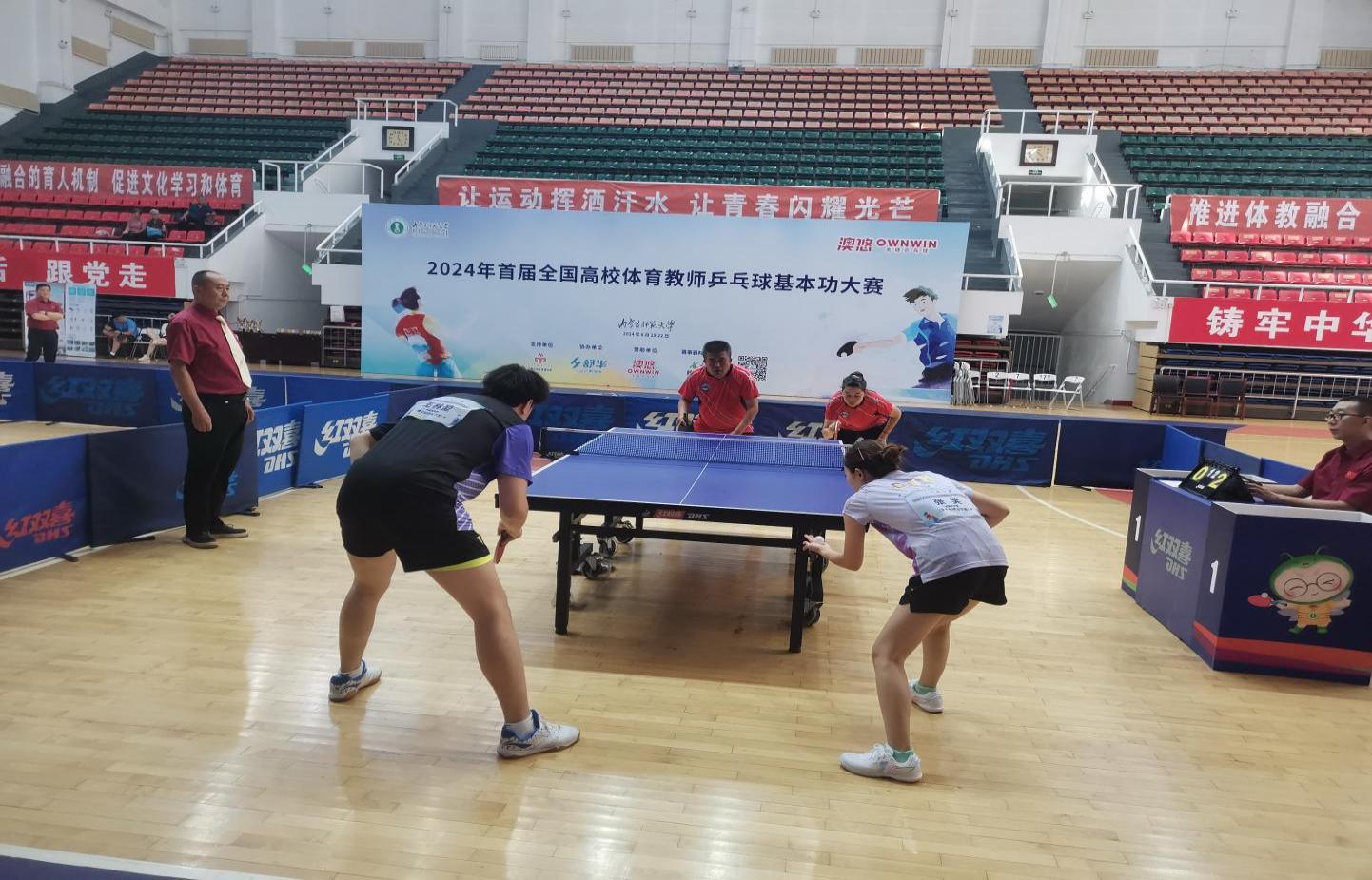 本次比赛由全国高校体育教师运动技能基本功大赛组委会主办,内蒙古师范大学承办,共有来自全国24所高校的151名乒乓球教师参赛,旨在通过以赛促学、以赛促教、以赛促研、以赛促用,积极推动体教融合和学校体育教学改革与创新,促进高校体育教师专项运动基本功的全面提升。本次基本功大赛分为个人赛和实战赛两部分,个人赛主要有基本功推-侧-扑的比赛,实战赛则为混合团体和单打比赛。我校教师代表队由TYC234CC太阳成集团院长王文杰教授担任领队,黎欣荣、王林堃、张笑三名参赛教师组成。在混合团体比赛中,以小组第一名的成绩出线,在第二阶段淘汰赛中以精湛的技术、出色的发挥战胜了对手,最终以全胜的战绩夺得混合团体赛冠军。男子单打比赛中,我院教师王林堃以出色的个人能力和战术运用,力压群雄,荣获男子单打50岁以下组冠军。基本功大赛女子组中,我院张笑教师也展现了扎实的基本功,荣获三等奖。