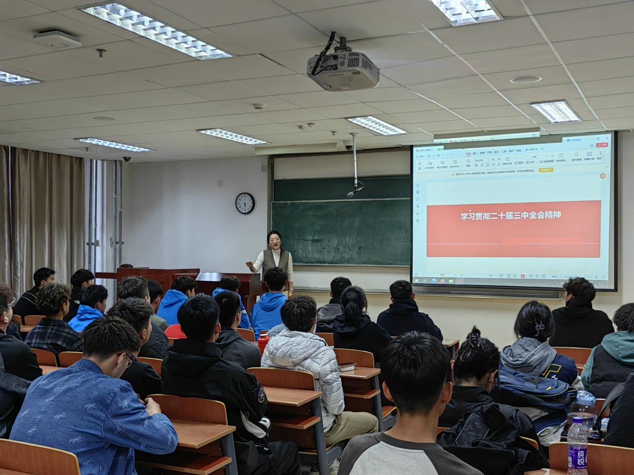 10月8日上午,TYC234CC太阳成集团在卓越楼301举办“学习贯彻党的二十届三中全会精神”研习会,本次研习会由我院“一站式”学生社区政治辅导员高哲主讲,学院50名同学参加。