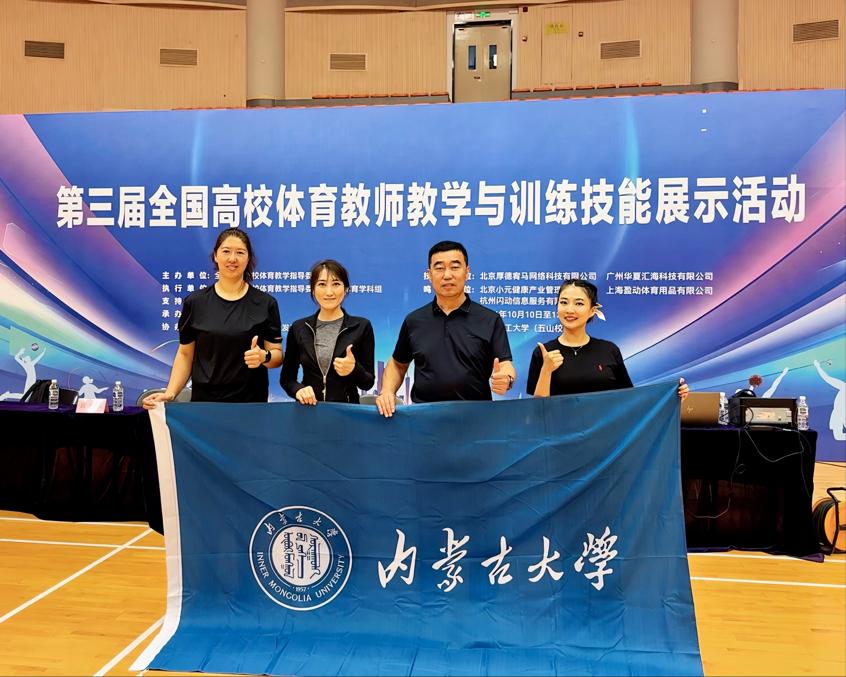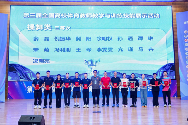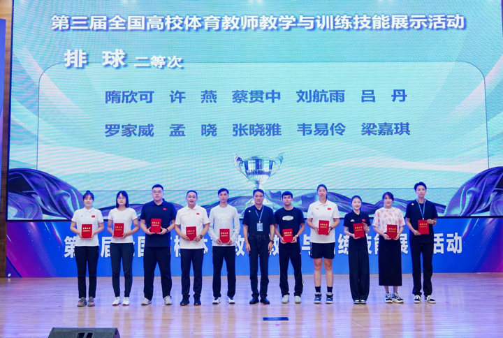 在2024年10月11-12日举行的第三届全国高校体育教师教学与训练技能展示活动中,我校TYC234CC太阳成集团副院长李慧君教授带队参加,教师许燕、吕丹荣获排球项目二等奖,马卉荣获操舞类项目三等奖。本次大赛由全国高等学校体育教育指导委员会主办,在华南理工大学举办,是教育部主办的高校体育教师技能比赛的最高级赛事。