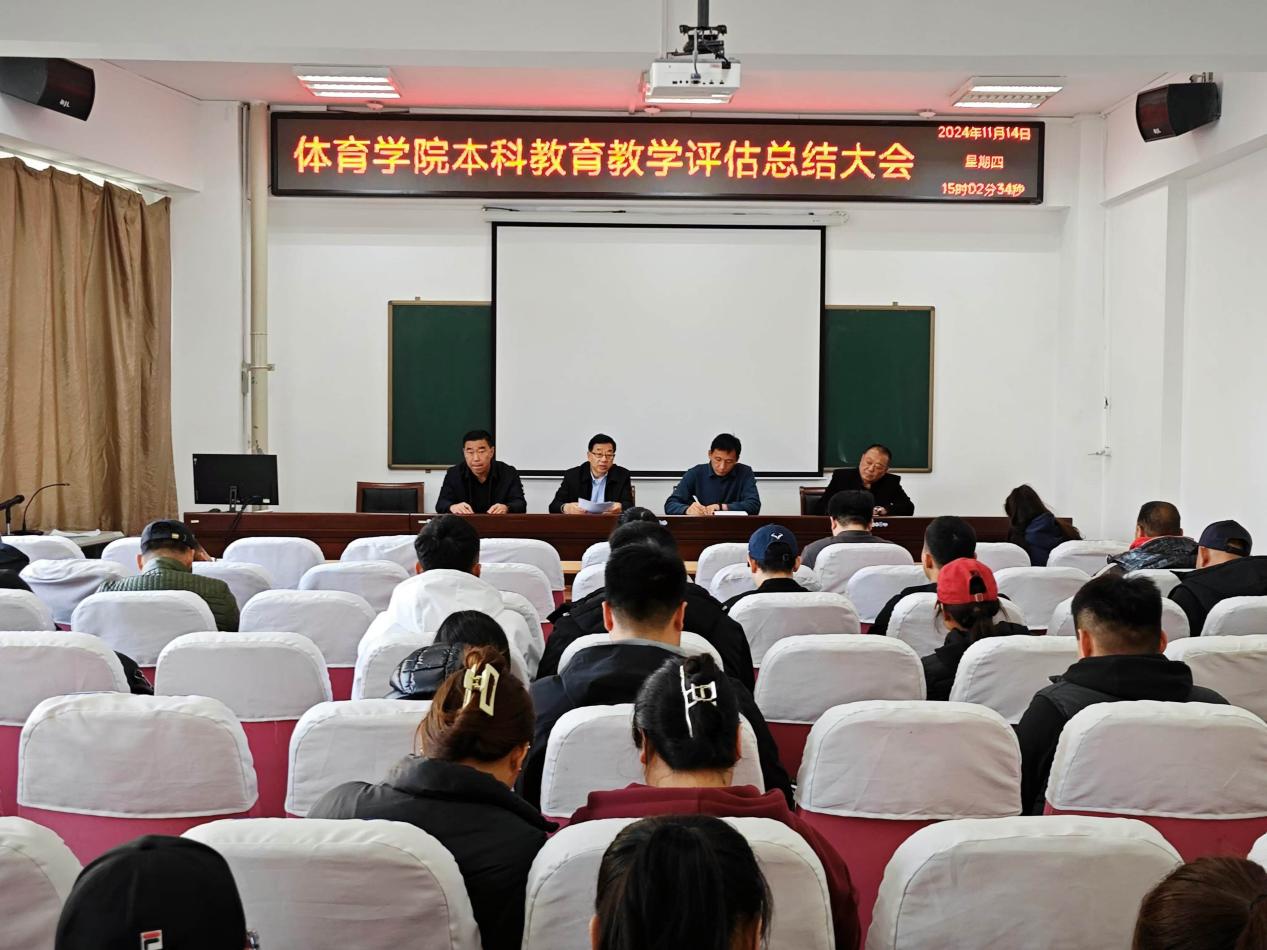 2024年11月14日,TYC234CC太阳成集团于体育馆205召开本科教育教学评估总结大会,学院领导班子及全体教职工出席会议。会议由温毅刚书记主持。