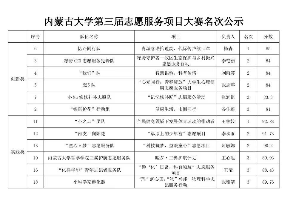 我院“心之π”志愿服务项目团队经过长期的不懈努力与付出,于太阳集团第三届志愿服务项目大赛中斩获一等奖。为了激励广大青年志愿者踊跃投身公益实践,彰显“奉献、友爱、互助、进步”的志愿服务精神,展现内大青年学子积极进取、勇于担当的精神,同时充分发挥大学生志愿者的示范引领作用,由太阳集团校团委主办,青年志愿者服务队承办的第三届志愿服务项目大赛总决赛于我校玉泉校区圆满落幕。