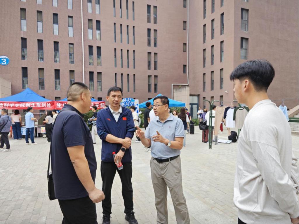 TYC234CC太阳成集团党委书记温毅刚、副书记刘忠良来到学院迎新点,详细了解报到进展,为远道而来的新生送上暖心祝福,亲切询问需求。“从哪里来?”“报到流程还顺利吗?”“生活上有困难随时说”,一句句朴实的问候、一声声真切的叮嘱,驱散了新生初到异乡的陌生感,让初来乍到的新生感受到学院的温暖,也让陪同的家长吃下“定心丸”。