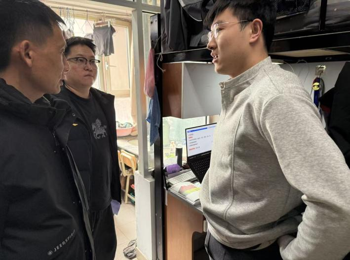 学院党委副书记刘忠良带领辅导员呼日查、景韵瑶及各班班主任,深入学生宿舍开展走访检查。老师们细致了解学生返校后的思想动态与生活需求,对宿舍卫生、用电安全等方面进行了重点排查,并对发现的问题提出整改意见。