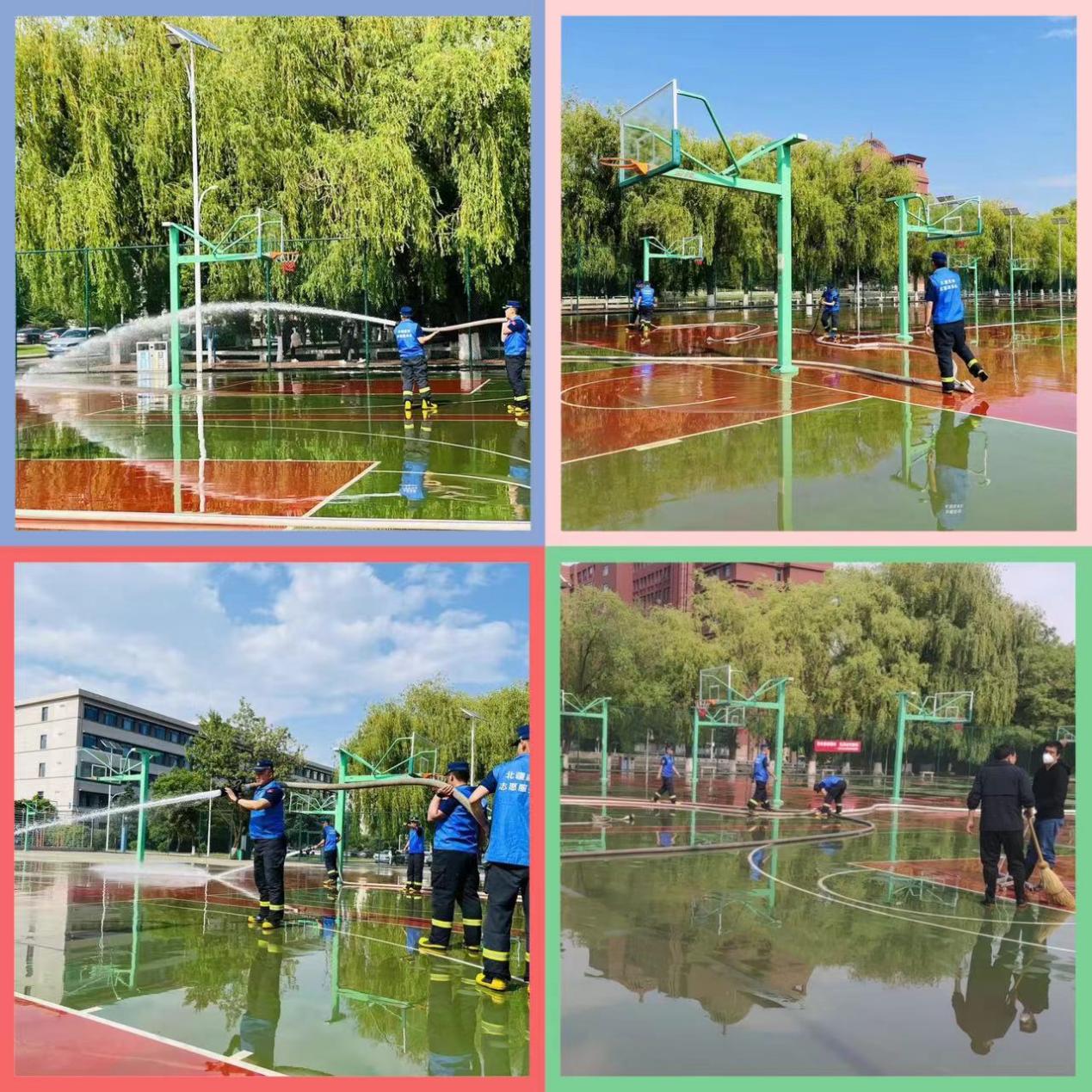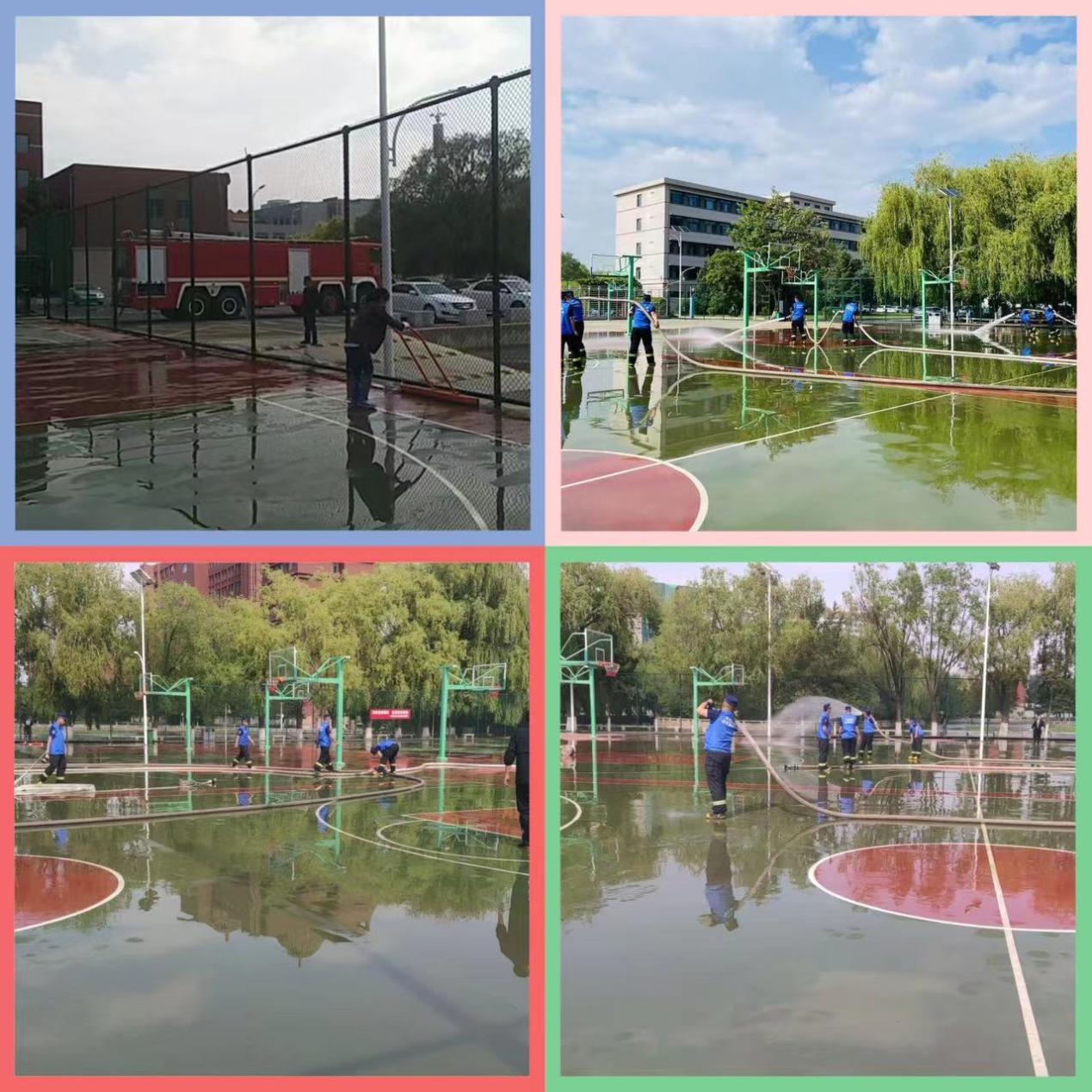 为了将主题教育学习落到实处,5月30日场馆中心党支部与赛罕区山丹消防队联合举办主题党日活动,对北校区室外篮球场(5500平米)进行了集中清洗。