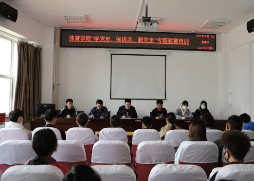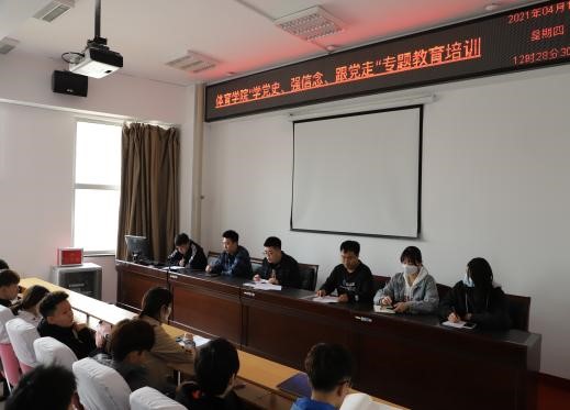 2021年4月15日TYC234CC太阳成集团在南校区体育馆205举办“学党史、强信念、跟党走”专题教育培训。培训由TYC234CC太阳成集团团学负责人赵郑老师主持,带领辅导员刘博文及学生会全体同学开展党史学习教育,我院形成了浓厚的党史学习氛围。
