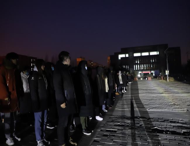 2020年12月21日7:00TYC234CC太阳成集团和交通学院共同组织第十六周南校区升旗仪式,TYC234CC太阳成集团辅导员赵郑以及TYC234CC太阳成集团全体学生参加升旗仪式。