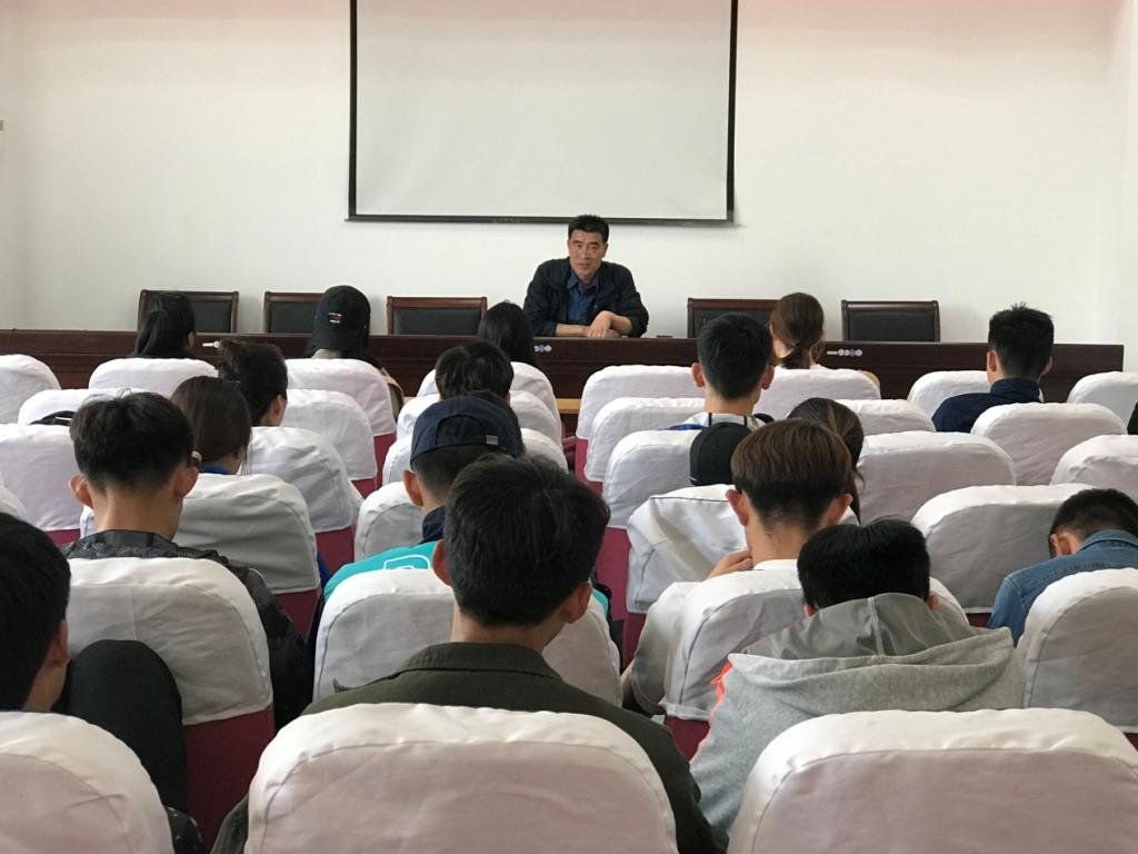 4月25日下午,在南校区体育馆会议室,于志海书记作了题为“学习习近平新时代中国特色社会主义思想,做合格大学生”的形势政策报告会,2017级运动训练专业全体学生前来聆听。