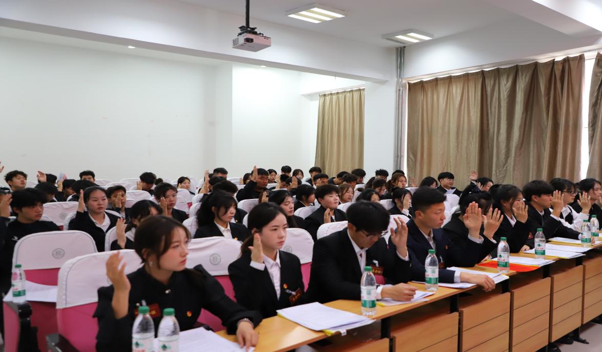 第七届团委学生会兼职副书记陈慧宣读《致学院广大青年学生的倡议书》,号召全体学生凝聚思想共识,加强自我教育,勇于实践,学以致用,在实践中增长才干,立志做有理想、敢担当、能吃苦、肯奋斗的新时代好青年。