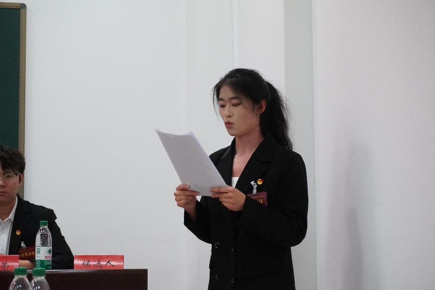 第七届团委学生会兼职副书记陈慧宣读倡议书