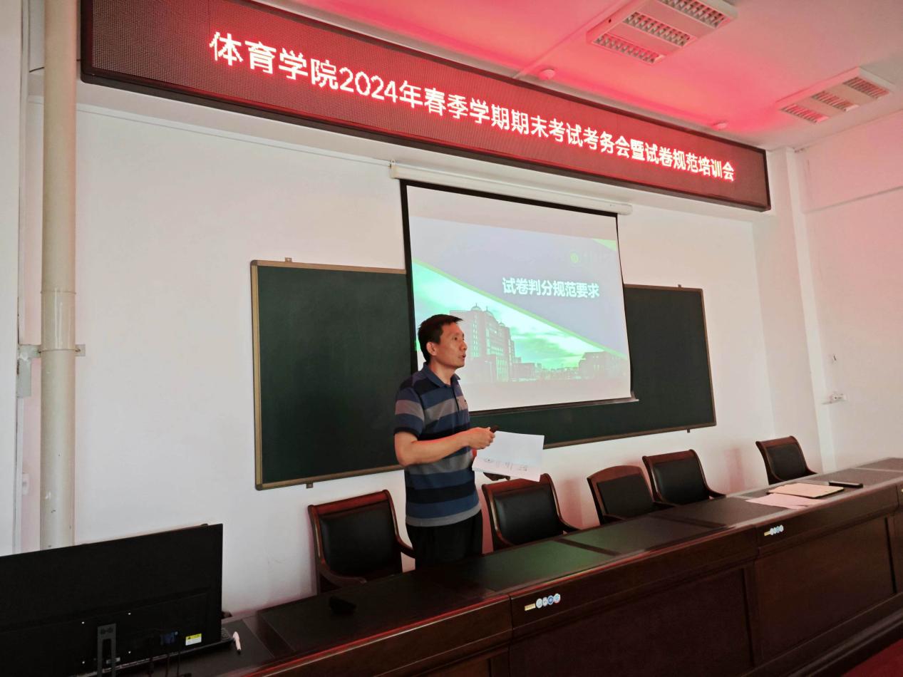 2024年6月6日,TYC234CC太阳成集团2024年春季学期期末考试考务会暨试卷规范培训会在205会议室召开。副院长刘忠良细致解读了期末试卷批阅工作的要求,强调试卷成绩评定和课程考核档案管理规范,并对2024年春季学期期末考试工作做了部署。
